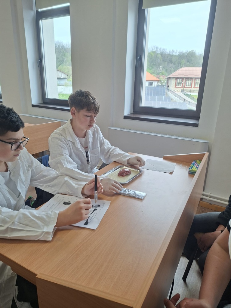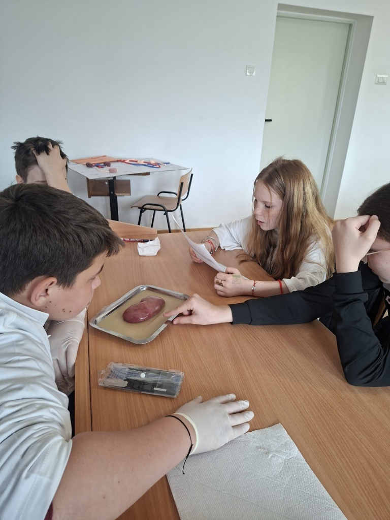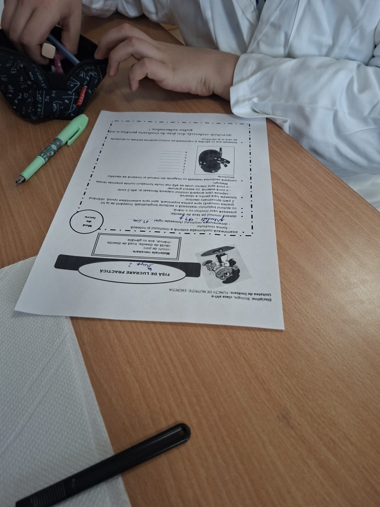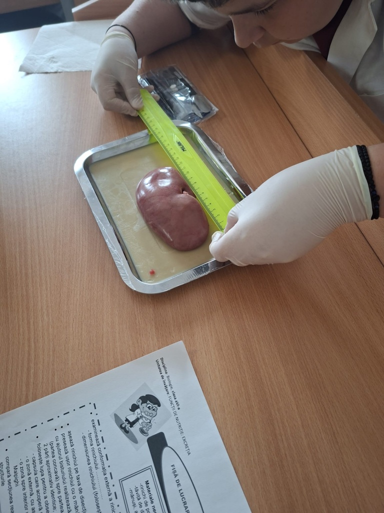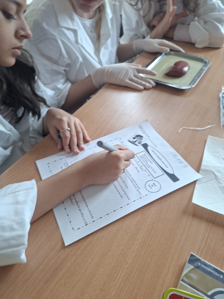 O activitate practică interesantă în laboratorul de biologie cu tema „Structura rinichiului”. Organizați pe grupe, elevii au lucrat pe baza fișei de lucru și au parcurs mai multe etape importante: