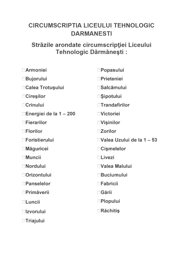 Străzi arondate pentru înscrierea la clasa pregătitoare 2022-20233 25 mart.,2022 Admin LTDLasă un comentariu